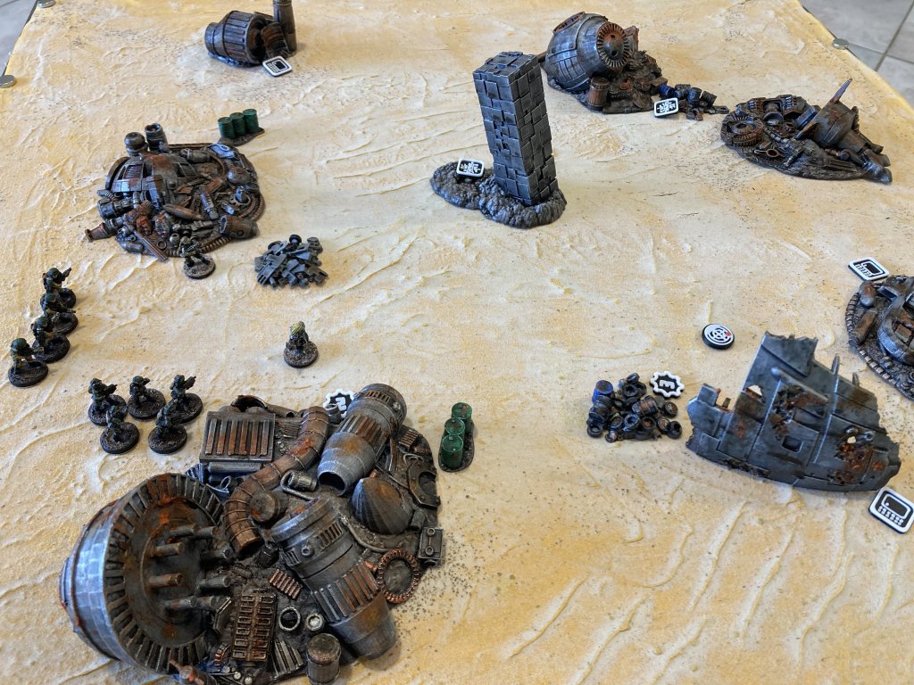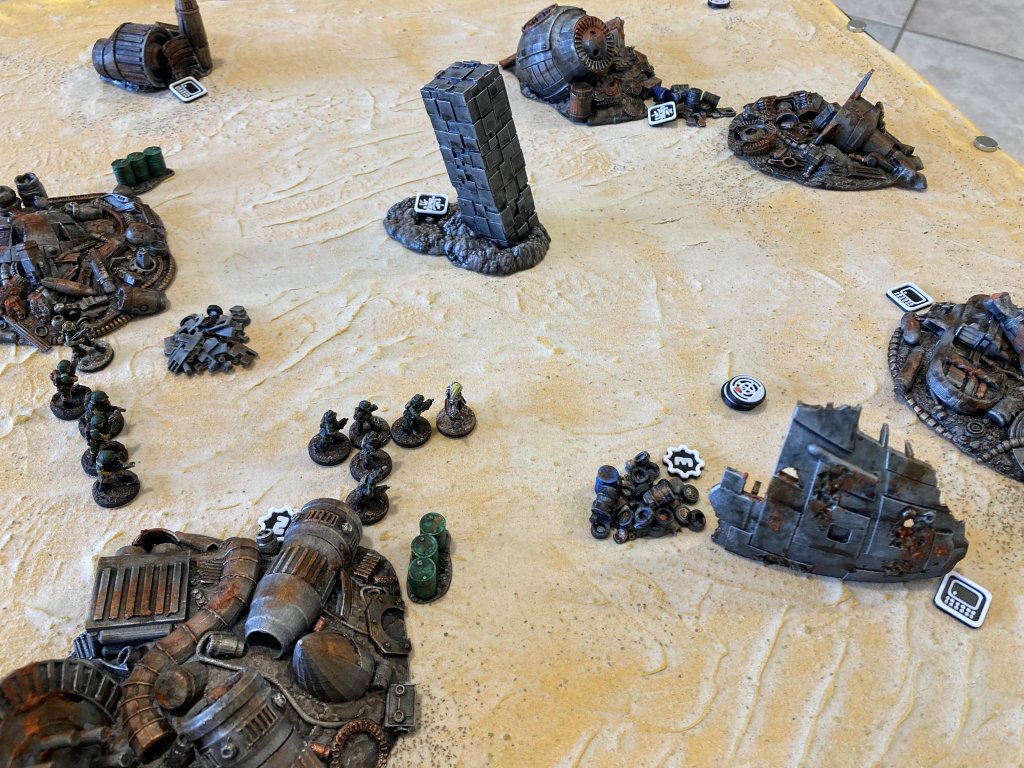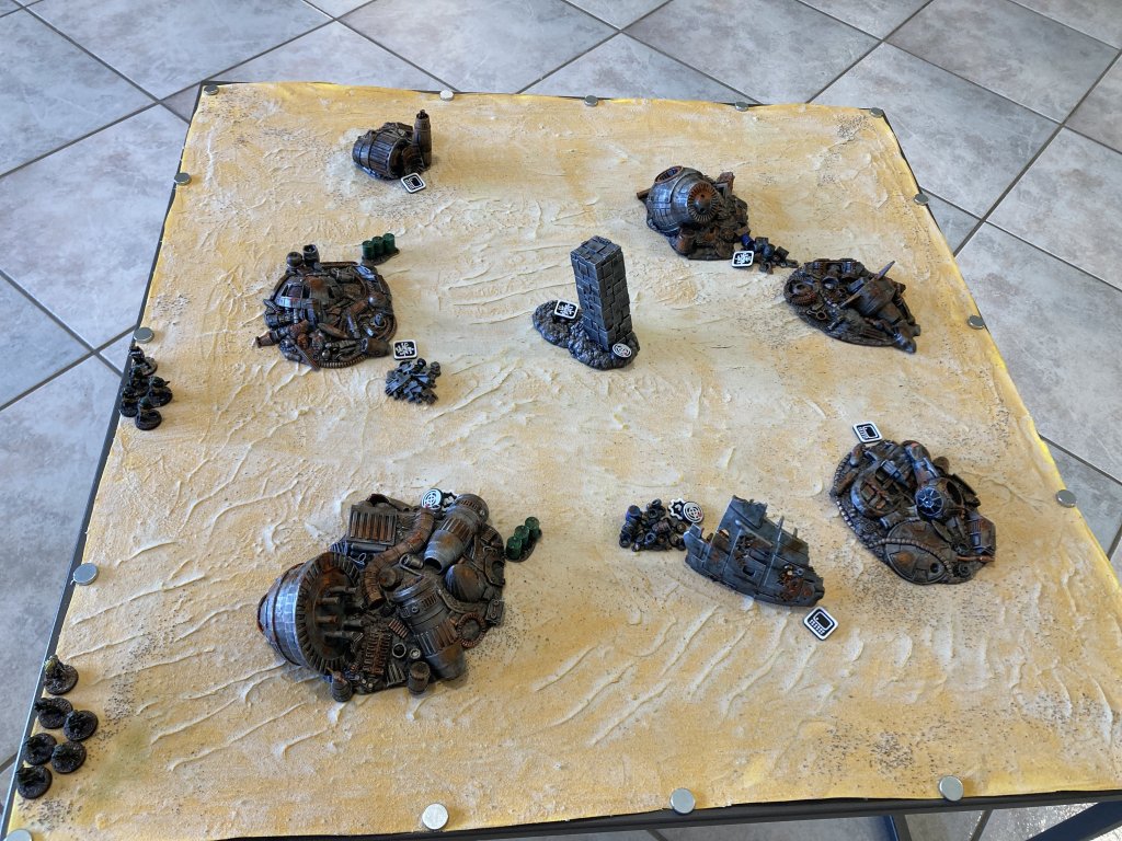 For terrain I decided to do a space junkyard with an alien monolith at the centre for theme.