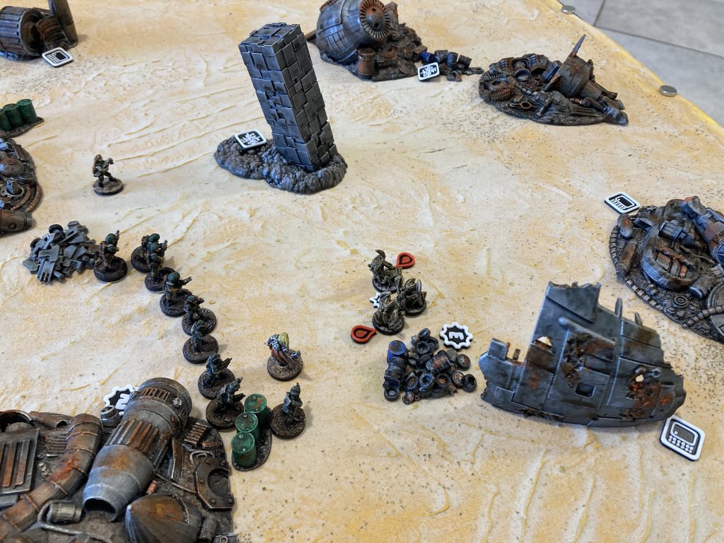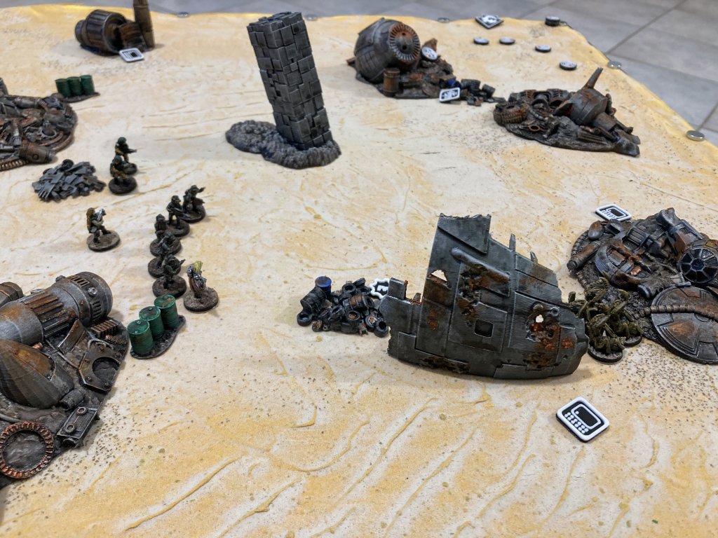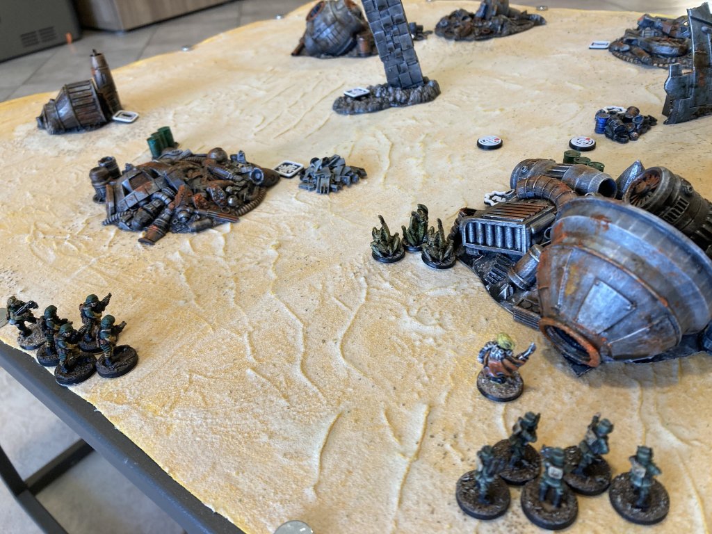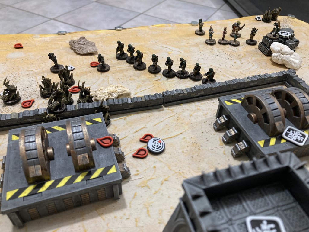 Continuing on my Five Parsecs from Home – Bug Hunt campaign, a dual episode, as I played two campaign turns back to back. I also was a bit burned out and didn’t do detailed note-taking of the mechanics and rolls. Bug hunt has a lot of figures and markers on the board to monitor so it can quickly become cumbersome. Instead, using my tokens and markers I noted down the most important parts, and also took pictures at least one per round. So I intend to give an overall overview of what happened each round, in a narrative style along with the pictures.